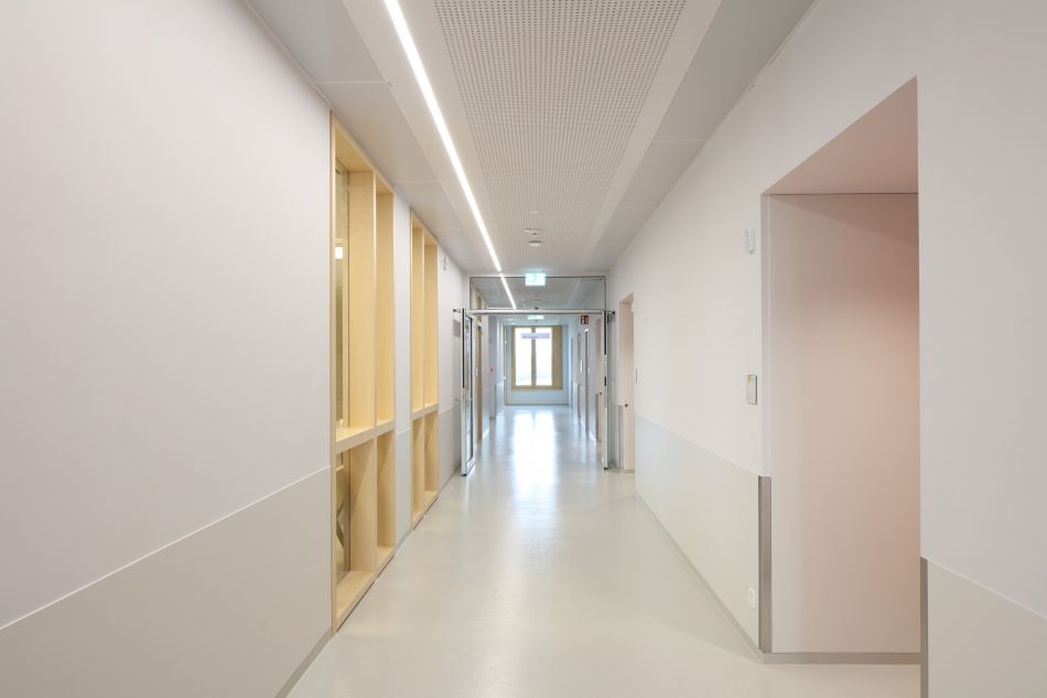 Und nicht zuletzt leisten farbenfrohe Möblierungen, zweckmäßige Verwendung von Holz im Innenausbau und eine ruhige, freundlich-helle Belichtung ihr übriges, damit man sich – einfach wohlfühlen kann - und das gibt Rückhalt.